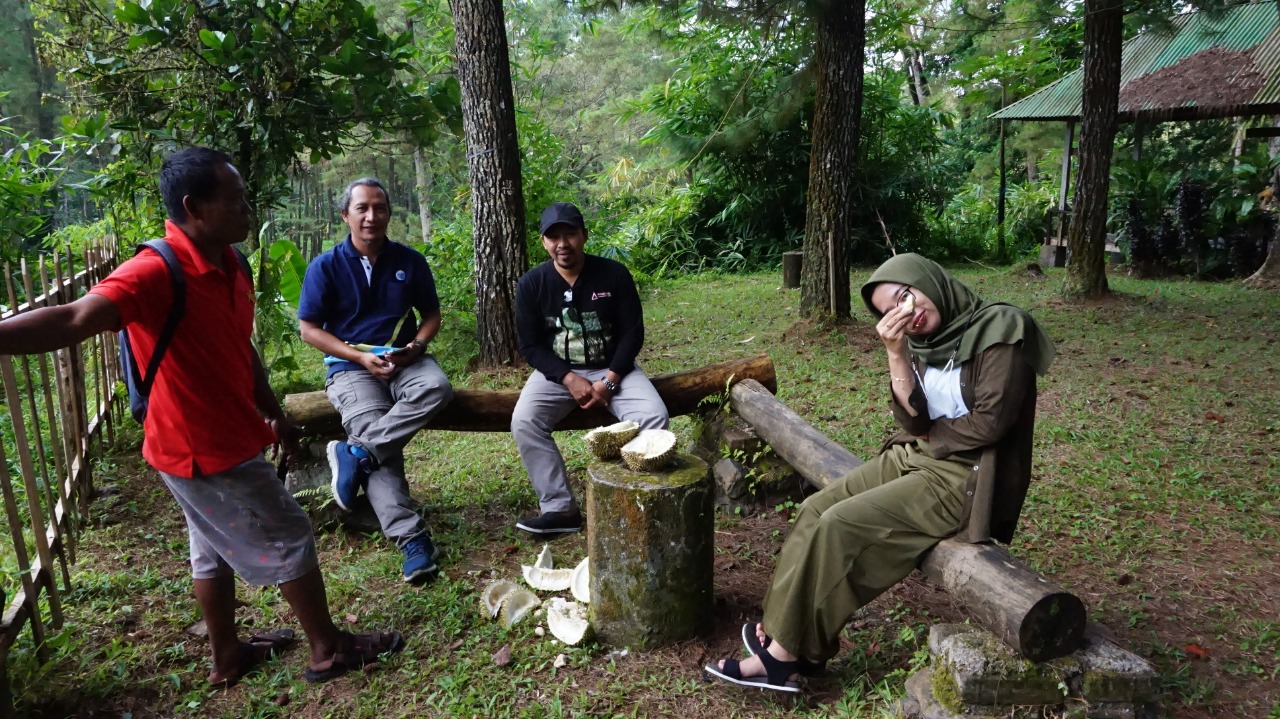 Setelah pelatihan monitoring dan input data pohon selesai, tim konservasi dan Jejak.in berlanjut untuk berdiskusi di area air terjun yang letaknya tidak jauh dari area tanam. Ditemani suguhan durian lokal dan suara air terjun, seluruh tim yang terlibat optimis program konservasi di Banyuwangi mampu berjalan dengan baik dan sesuai dengan target tujuan bersama.