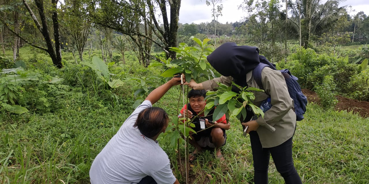 Lanjut pada pelatihan monitoring pohon, Tim Jejak.in dan BKAD terus menyisir lokasi tanam yang menyesuaikan SOP, yaitu besaran plot seluas kurang lebih 400 m2 dan pohon tidak boleh ditebang selama 10 tahun. Setelah menyusun plot demi plot, tim konservasi menghitung pohon yang berada didalamnya. Pohon yang didata meliputi pohon durian, alpukat, cengkeh, sukun, mahoni, dan lain sebagainya