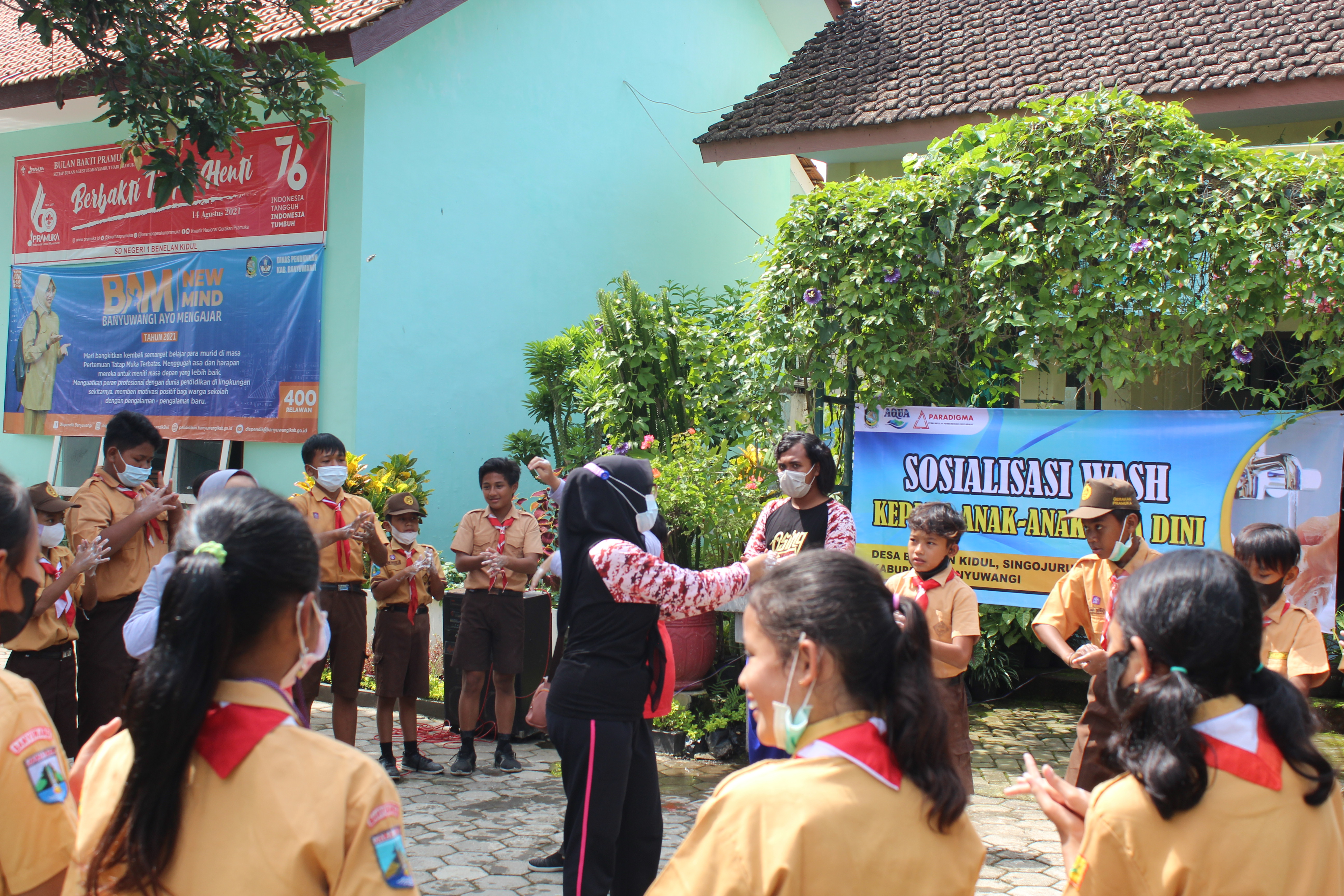 Lembaga PPM Paradigma bersama Agen Edukasi Kader WASH (Water, Sanitation, and Hygiene) melakukan sosialisasi kesehatan sekaligus praktik Cuci Tangan Pakai Sabun (CTPS) pada seluruh siswa SDN 1 Benelan Kidul, Singojuruh, Kabupaten Banyuwangi pada Sabtu kemarin (22/1/2022). Kegiatan tersebut masih dalam rangkaian program WASH PT Tirta Investama AQUA Banyuwangi tahun 2021/2022.