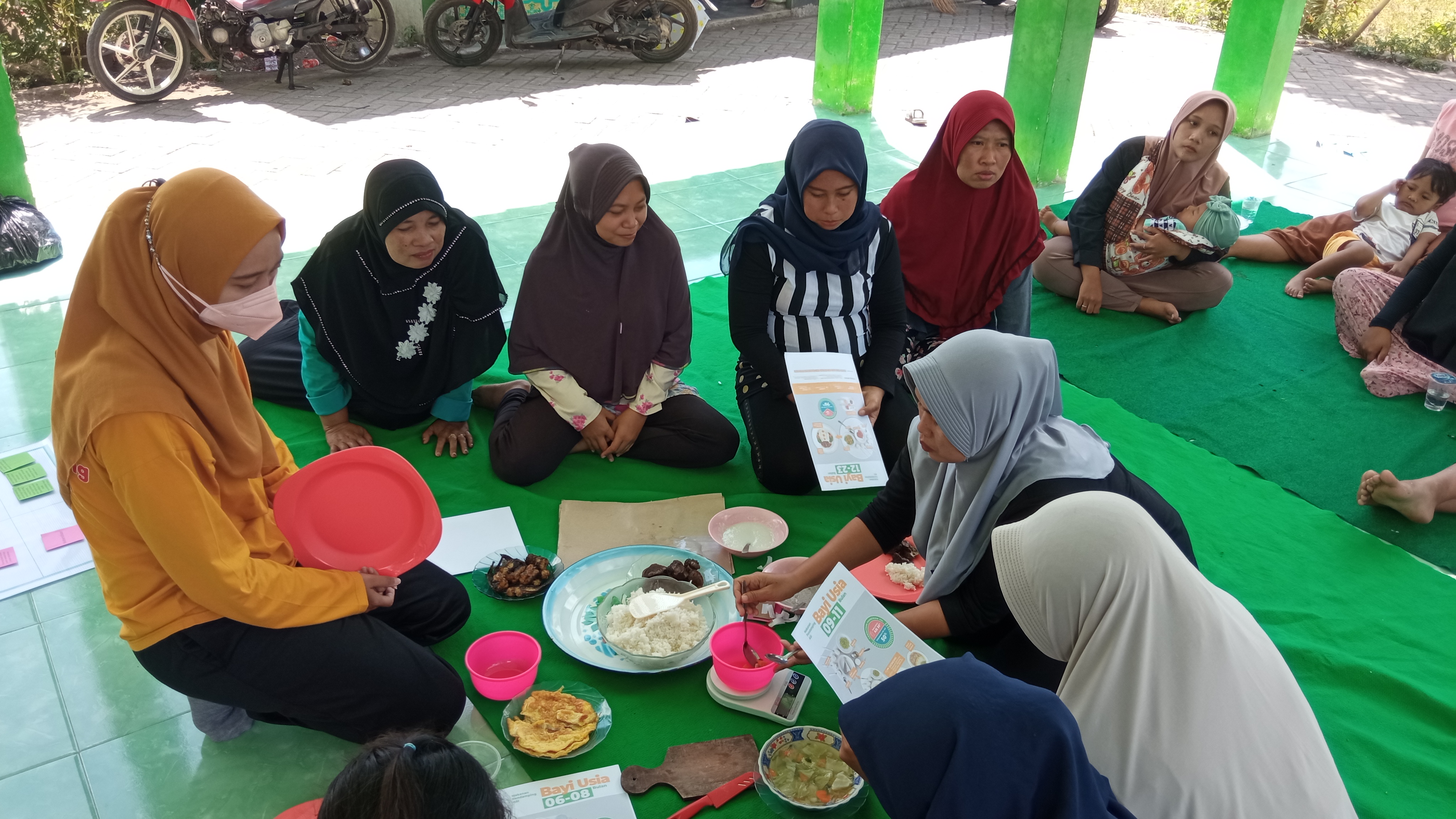 Selama pelatihan yang dilangsungkan pada tanggal 8 - 9 September 2023 ini, fasilitator yang merupakan ahli gizi dari puskesmas dan bidan desa menjelaskan asupan makanan dan gizi yang pas sesuai dengan volume perut bayi tiap usia, kandungan gizi yang baik dari makanan rumahan didapat dari makanan apa, pentingnya seribu HPK, makanan bayi MPASI, PMBA, sampai pada komposisi isi piringku, dan lain sebagainya.