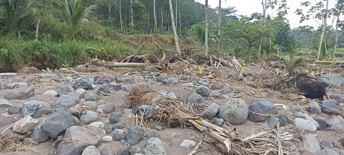 Hari Jum’at, (07/07/2023), Songgon di guyur hujan sehari semalam yang mengakibatkan debit sungai badeng meningkat sangat signifikan. Efeknya semua badan sungai tergerus, baik tanah maupun lahan persawahan. Tidak terlewat juga pohon pada program penanaman tahun 2021 yang banyak di tanam di area badan sungai badeng. Sekitar ribuan pohon hilang tidak terdeteksi sama sekali, termasuk pohon yang tersampling dan terinput pada platform jejakin.
